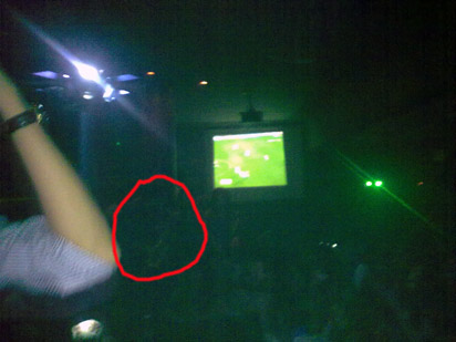 Instantly disliking each other after revealing our national identities, he said goodbye and carried on trumpeting around the club. If there ever was such a sentence like that uttered before I’d like to see it. Just to prove this isn’t made up, here is a picture I took on my mobile phone of him across the club. The picture is of course appalling as it was dark and on a mobile, so I circled the guy, you can just about make out the trumpet shape.